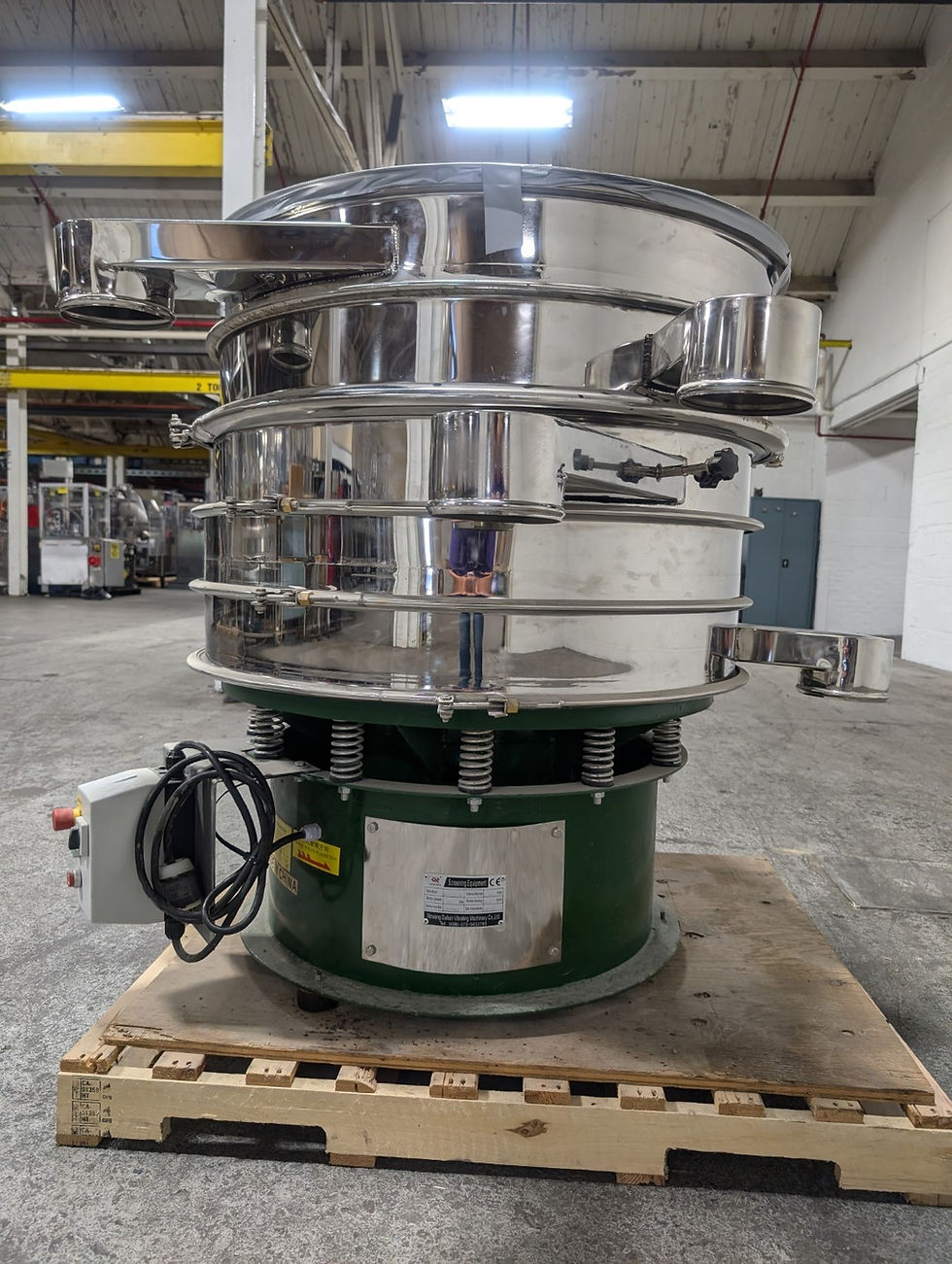 This used 39" Dahn vibratory sifter, model DH‑1000‑2S, built in 2020, offers efficient particle sizing and material separation for food, chemical, pharmaceutical, and industrial processing. Its durable stainless steel construction and 4‑deck configuration support multi‑grade screening with reliable performance.